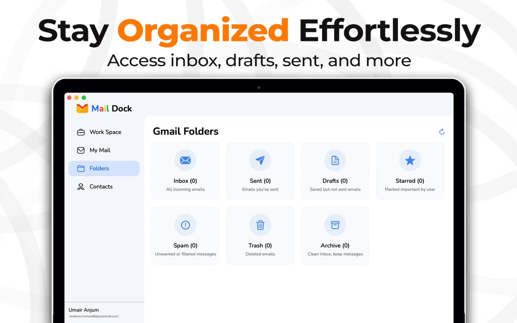 MailDock keeps your email perfectly structured by giving you quick access to all essential Gmail folders in one clean view.